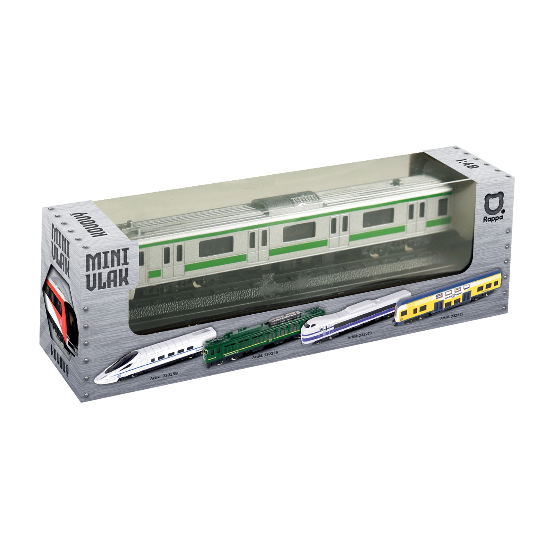 Descubre un estiloso modelo de metro con proporciones precisas y un atractivo acabado plateado‑verde. Gracias a su carrocería metálica y a las ventanas finamente trabajadas, el tren ofrece un aspecto fiel y premium, ya sea en una vitrina o en marcha.