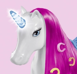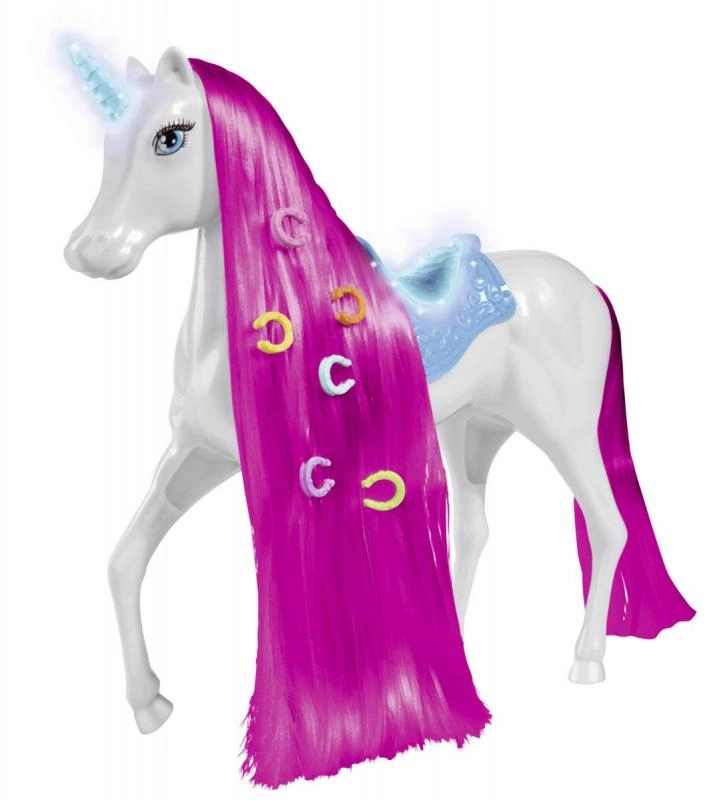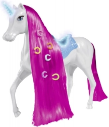 Descubre un mundo mágico lleno de fantasía con este unicornio para la muñeca Steffi. El compañero perfecto para tu muñeca con un cuerno luminoso que añade un ambiente mágico a cada juego.