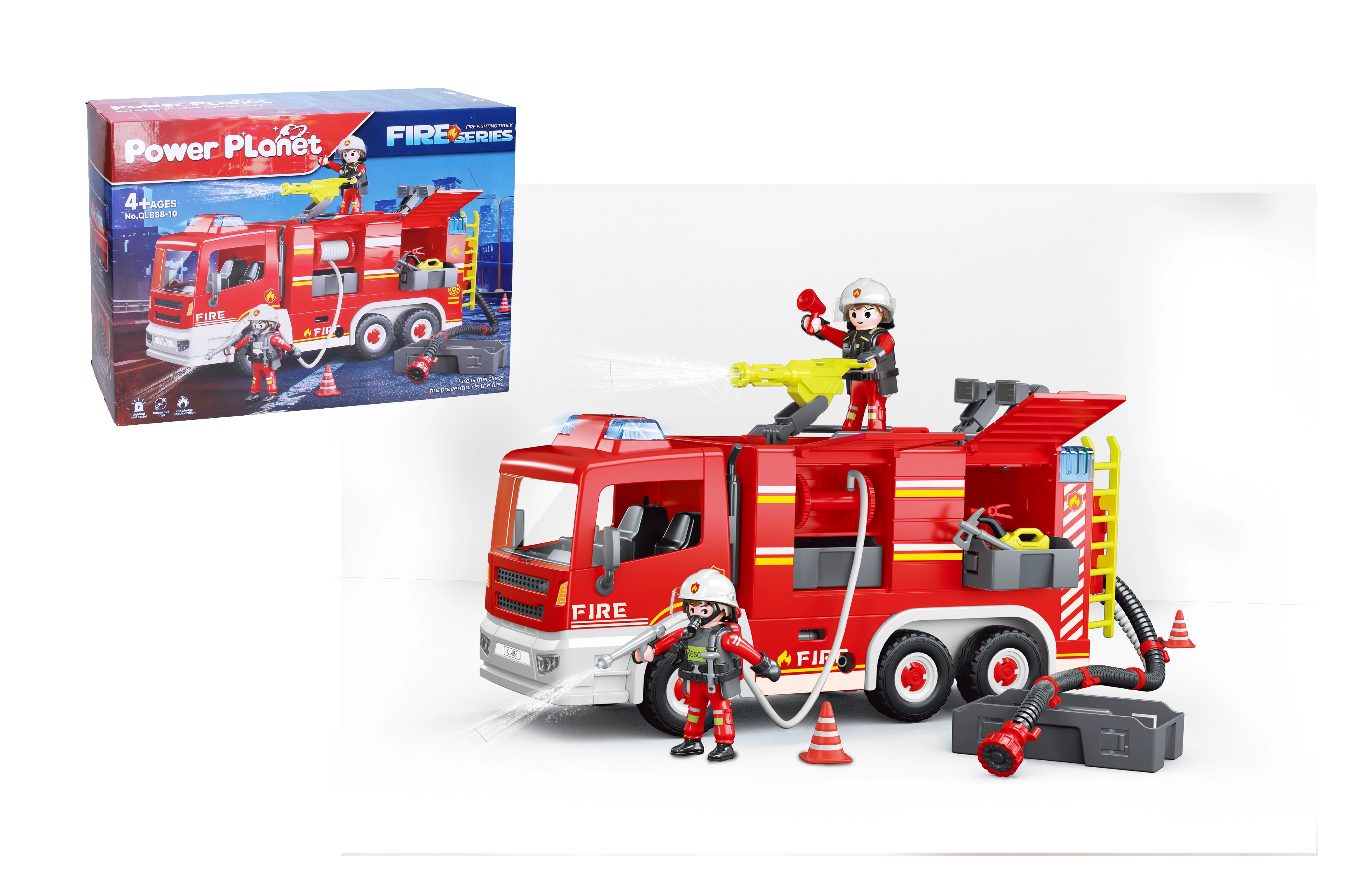 Construye tu propio camión de bomberos con este kit, que ofrece efectos de luz y sonido y compartimentos abatibles. ¡Diversión ideal para niños!