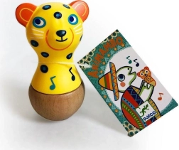Este colorido sonajero en forma de jaguar es un gran compañero para los primeros descubrimientos del mundo. Gracias a su tamaño compacto de unos 10 cm, se adapta perfectamente a la mano del niño e invita a agitarlo y explorarlo. Su suave sonido estimula el oído y favorece la coordinación ojo–mano.