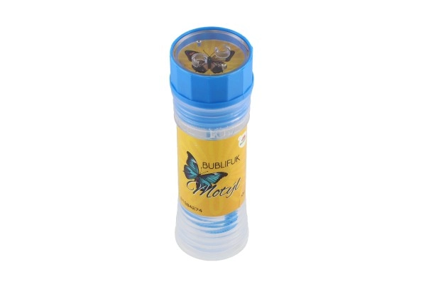 El pompero con forma de mariposa es el juguete ideal que atrae a los niños no solo por su belleza arcoíris, sino también por su facilidad de uso. En la parte superior incluye además un divertido rompecabezas con bolita, que contribuye al desarrollo de la motricidad fina.