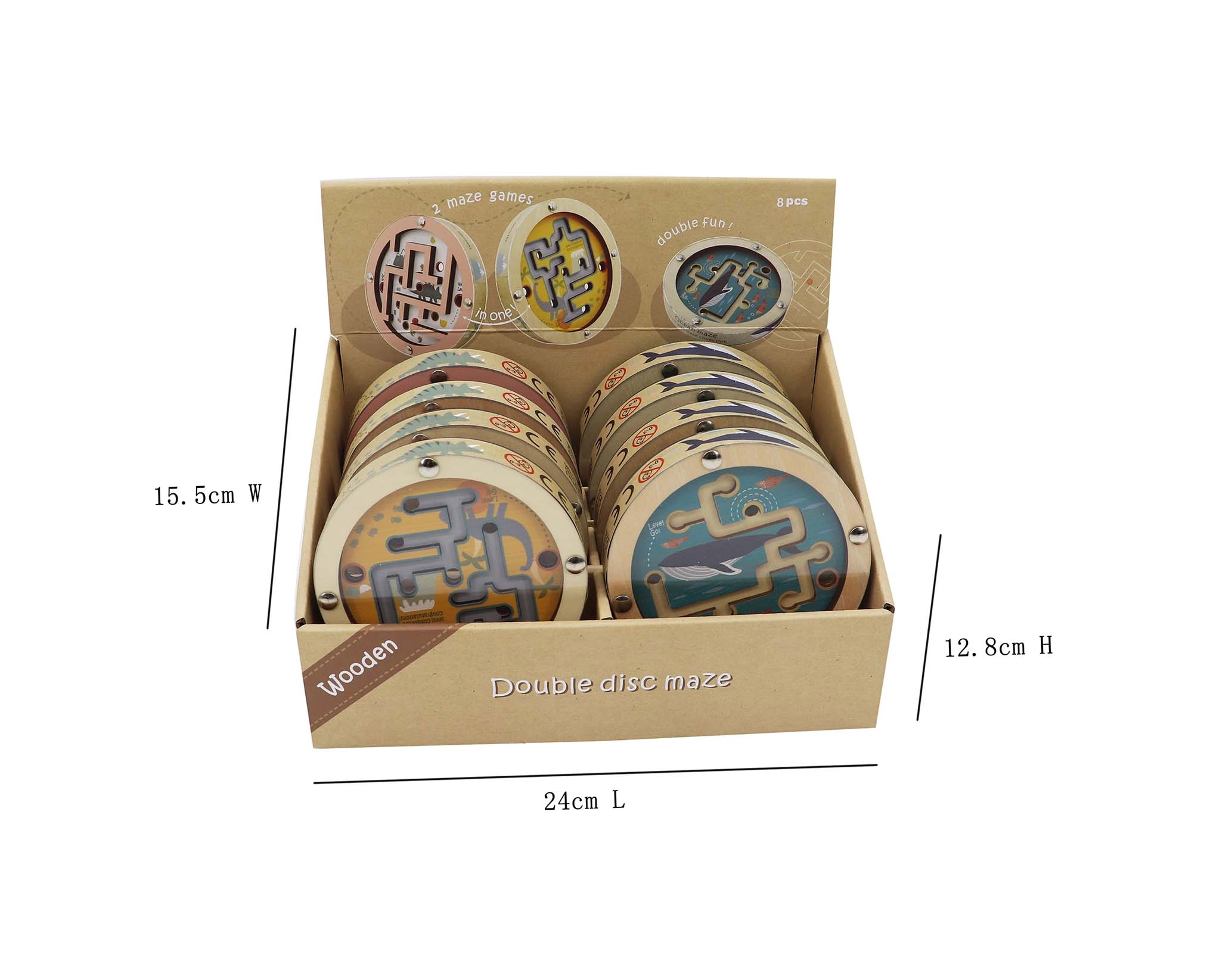 Disfruta de horas de entretenimiento con este juego de canicas de madera de doble cara, que cautiva a niños y adultos con sus hermosos diseños de temática marina y de dinosaurios. Es ideal para desarrollar la motricidad fina, la concentración y la paciencia. Incluye dos superficies de juego diferentes que cubren varios niveles de dificultad.