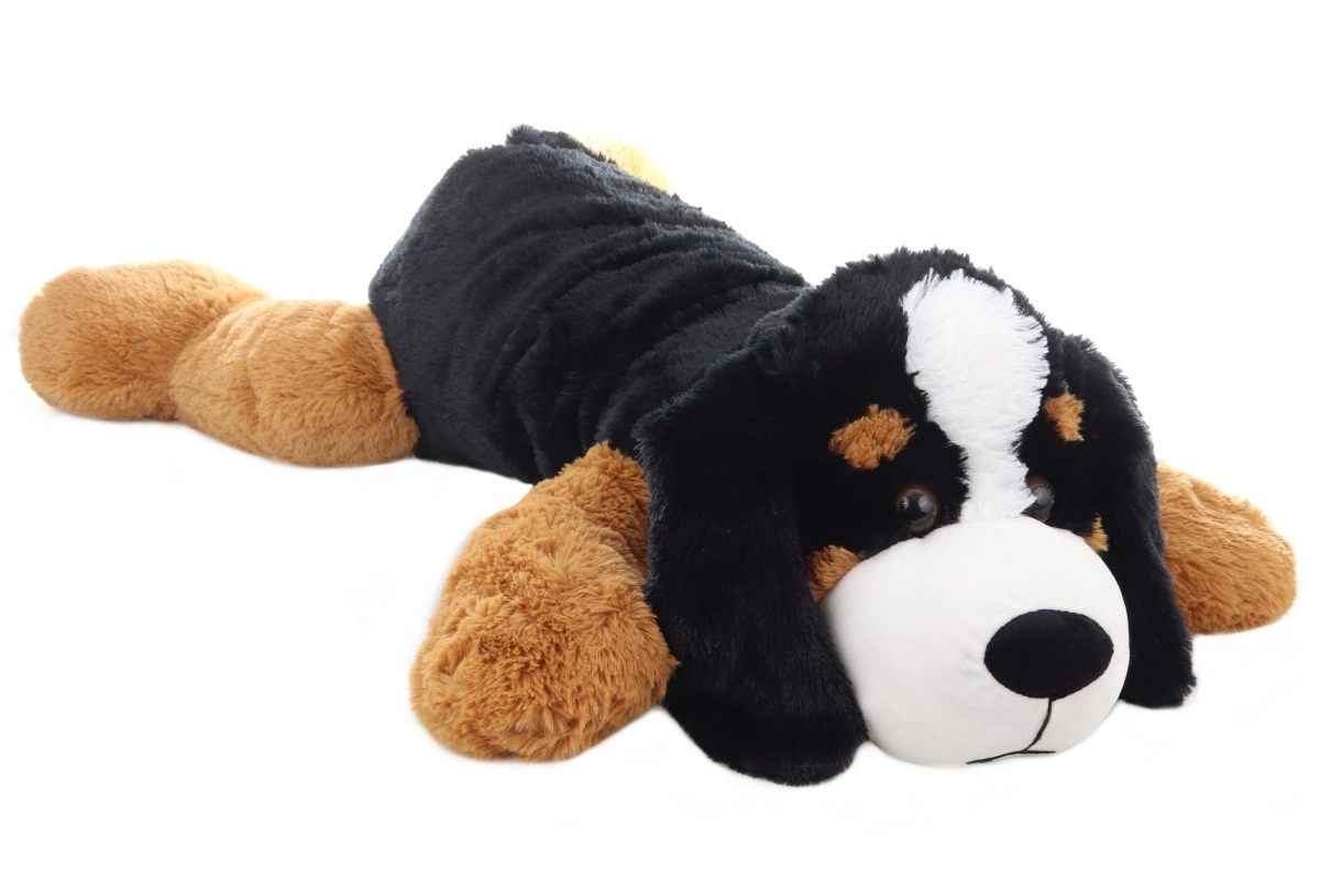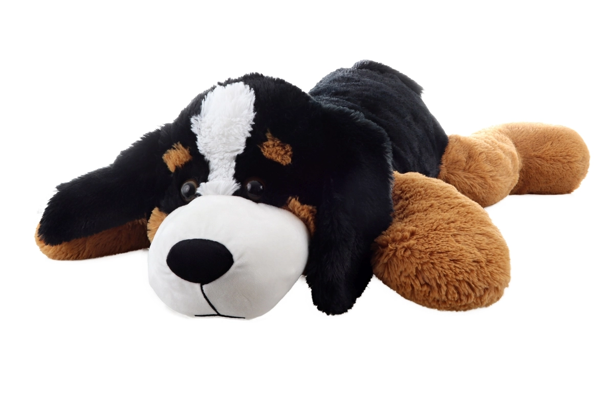 Este gran perro de peluche sorprende por su combinación de colores realista y su superficie aterciopelada que invita a abrazarlo. Con unas dimensiones de 100 × 57 × 20 cm, no solo funciona como juguete, sino también como cojín cómodo o elemento decorativo para el interior.