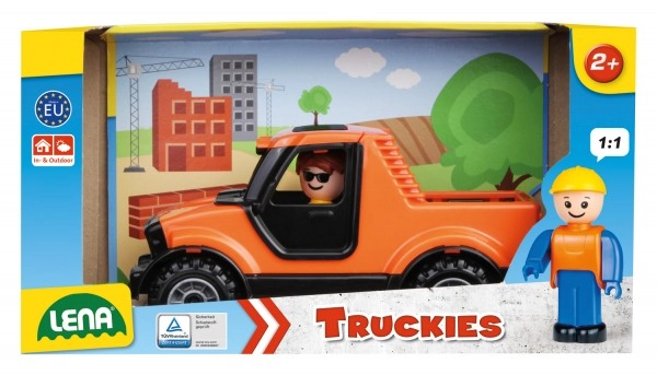 Descubre la robusta camioneta infantil de la serie LENA TRUCKIES, fabricada en plástico de alta calidad y resistencia, totalmente funcional de forma mecánica. Ofrece cabina abatible con figurita activa, gran durabilidad y juego seguro para niños a partir de 2 años. Fabricado en la República Checa.