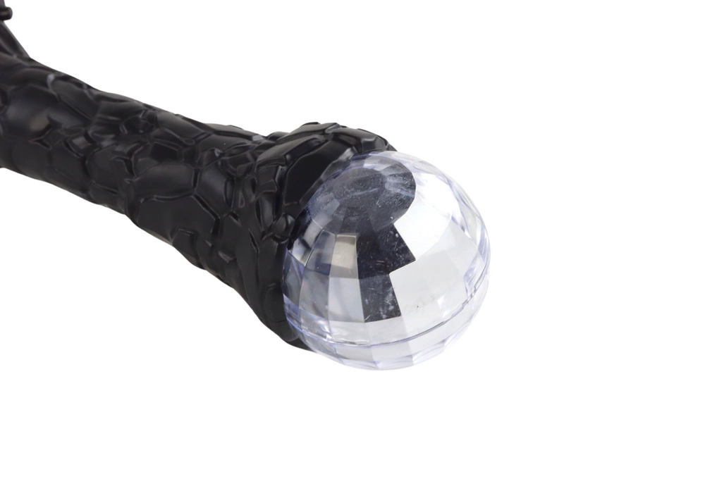 La esfera facetada transparente crea atractivos efectos de luz y complementa el aspecto futurista de la espada.