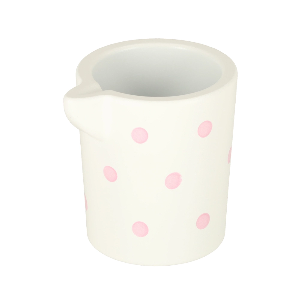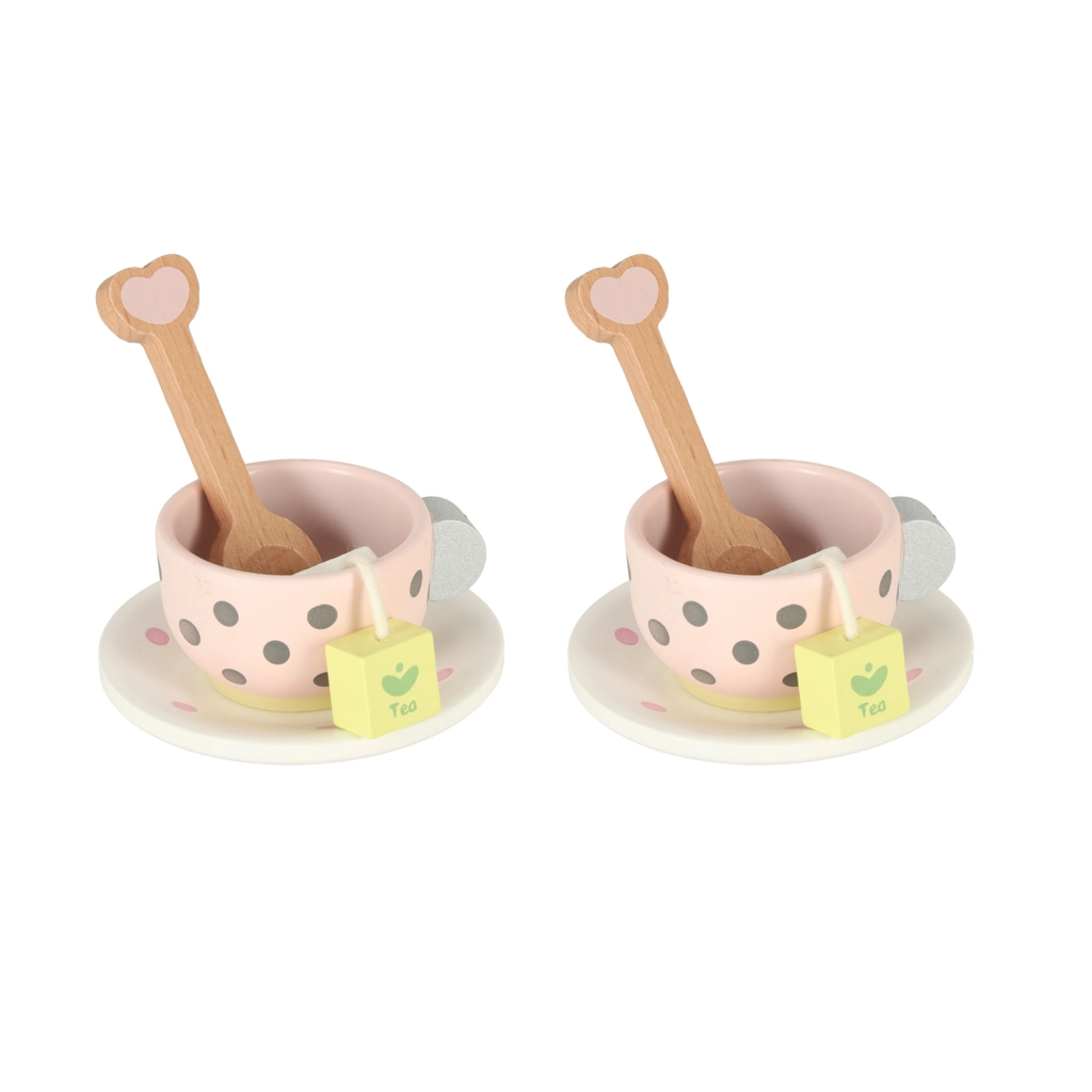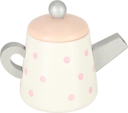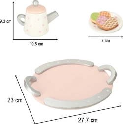 El juego de té de madera tiene un encantador diseño pastel con delicados lunares que atrae la atención de los niños y los anima a jugar.