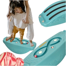 La tabla de equilibrio turquesa es una herramienta ideal para desarrollar las habilidades motoras y el equilibrio en los niños. El interesante laberinto con bolitas de goma ofrece una excelente oportunidad de entrenamiento. La seguridad está garantizada por los elementos antideslizantes y la superficie texturizada, que evita resbalones durante el juego.
