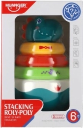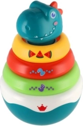 Esta divertida pirámide apilable con motivo de dinosaurio combina juego y aprendizaje. La base redondeada se balancea en todas direcciones con un toque y activa un agradable sonido de campanilla que estimula naturalmente el oído. Los niños practican el agarre, el orden de los anillos por tamaño y el reconocimiento de colores: ideal para sus primeros descubrimientos.