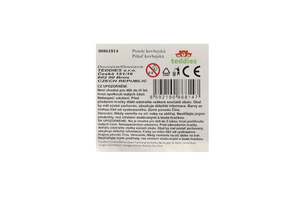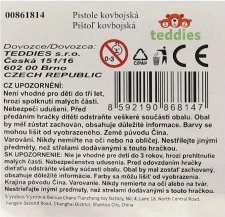 - 2 pistolas de plástico, 2 fundas, placa de sheriff, cinturón; según la variante puede incluir máscara y pañuelo