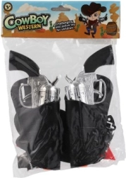 ¡Lleva el Lejano Oeste a tu habitación! El set de vaquero para niños trae todo lo que necesita un pequeño sheriff: dos pistolas de plástico ligeras con aspecto realista, fundas para el cinturón y una placa de sheriff. Gracias a los accesorios como la máscara, el pañuelo y el cinturón, crearás fácilmente un disfraz completo para jugar o para carnaval.