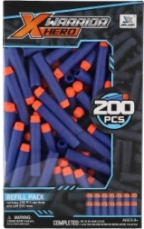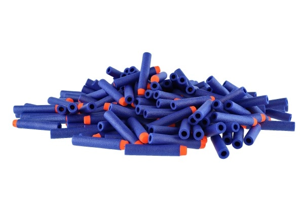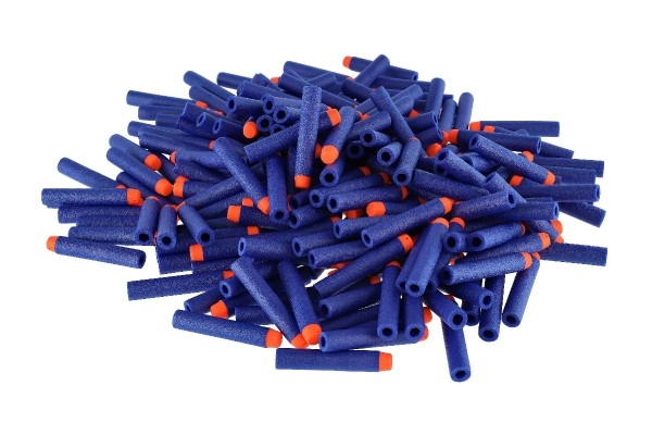 Completa tus reservas para las batallas con blásters: este paquete incluye 200 dardos de espuma en color azul con punta naranja para una mejor visibilidad. Los dardos están hechos de espuma suave y resistente, por lo que son aptos para jugar tanto en interiores como en exteriores y se encuentran fácilmente tras la acción.