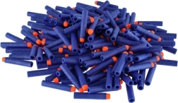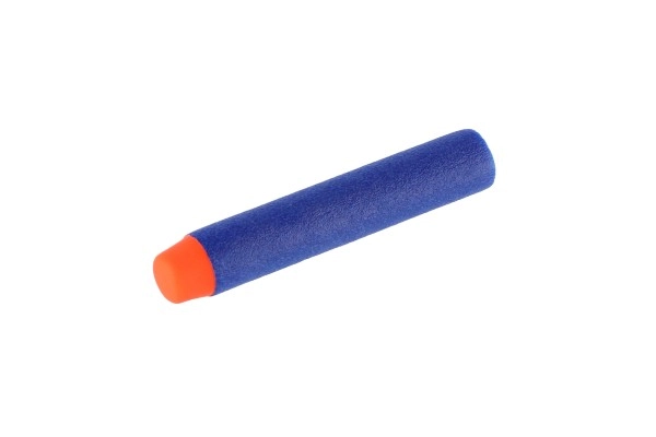 La forma estándar encaja en la mayoría de los blásters (p. ej., NERF, X-SHOT). El color azul y las puntas naranjas facilitan encontrar los dardos después del juego.
