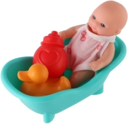 Este colorido set de baño con muñeca es perfecto para el juego diario. Gracias al cuerpo de plástico rígido, la muñeca es resistente y fácil de mantener. La bañerita y los pequeños accesorios, como el biberón o el patito, fomentan el juego creativo y el desarrollo de la motricidad fina.