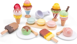 Juguete para pequeños amantes del helado. Disfruta de una diversión refrescante con el set de dulces de madera, que incluye helados de palo, copas y bolas de helado.