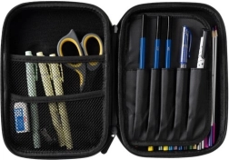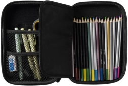 En el interior encontrarás una solapa con 6 presillas para lápices, bolígrafos o rotuladores, 2 bolsillos de malla para pequeños accesorios y un compartimento principal que puede alojar un set de material artístico o una tableta de hasta 8,5″. La solapa además protege la pantalla contra arañazos. El estuche es perfecto para el colegio, viajes o como organizador práctico en tu espacio de trabajo en casa.