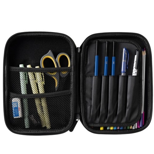 Dos bolsillos de malla para pequeños objetos, una solapa interior con 6 presillas para material de escritura y un compartimento espacioso mantienen todo ordenado y a mano. Ideal para estudiantes y creativos.