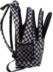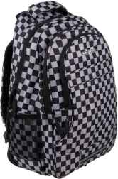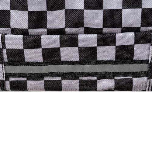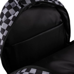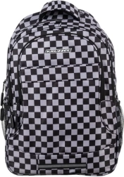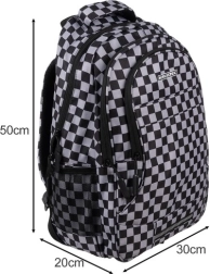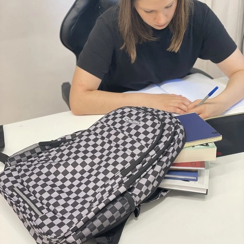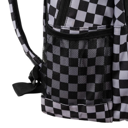 Mochila con estilo y resistencia con patrón de ajedrez de la marca KRUZZEL, ofrece amplia capacidad de 30 l, tirantes ergonómicos acolchados y organización inteligente para la escuela, el trabajo y el tiempo libre. Fabricada en OXFORD 600D de alta calidad con forro, cuenta con múltiples bolsillos con cremallera, bolsillos laterales de malla para botella y elementos reflectantes para mayor seguridad. El paquete incluye también un saco con cordón a juego para calzado o educación física.