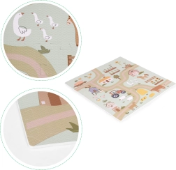 Descubre la alfombra de espuma versátil con motivo de granja que impulsa el juego creativo y el desarrollo de la imaginación. Gracias a su agradable superficie y a su grosor de 1 cm, ofrece comodidad para jugar, gatear y descansar. La alfombra se arma como un rompecabezas, por lo que puedes adaptarla fácilmente al espacio y crear diferentes formas.