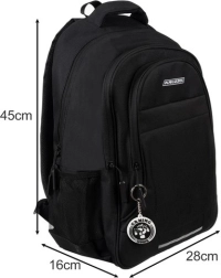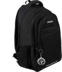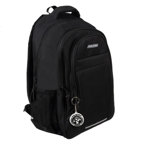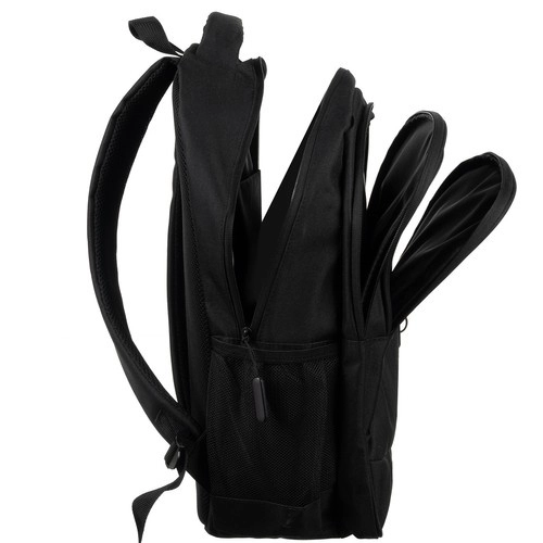 La disposición práctica incluye un compartimento principal con dos tiradores para una apertura cómoda, funda acolchada para portátil/tableta, un segundo compartimento para cuadernos y materiales planos, bolsillo frontal para el almuerzo y pequeños objetos, y bolsillos laterales de malla para botella. La tira reflectante mejora la visibilidad en condiciones de poca luz. Una mochila versátil: para la escuela, el trabajo, el entrenamiento y el tiempo libre.