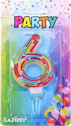 Una vela elegante para tarta con forma de número 6 y diseño de rayas que dará un toque especial a la celebración y resaltará la edad o el aniversario. Gracias al soporte integrado de cera, la vela se coloca fácil y firmemente en la tarta. La altura de la vela sin soporte es de aprox. 6 cm. Ideal para cumpleaños, aniversarios y fiestas temáticas.
