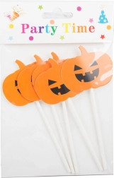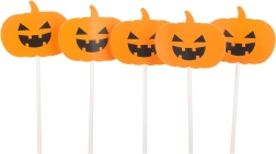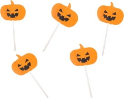El paquete incluye cinco pinchos de calabaza que cubren la decoración de una celebración pequeña o complementan una mesa dulce temática.