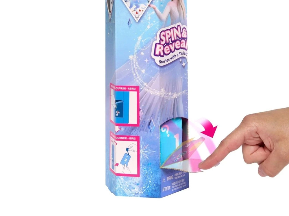 Descubre la mágica muñeca ELSA del mundo DISNEY FROZEN con el empaquetado interactivo Spin & Reveal y un total de 11 sorpresas. Los niños a partir de 3 años disfrutarán desempaquetando, estilizando y contando historias: la muñeca tiene cabello largo y suave, falda y capa extraíbles y un set de accesorios y pegatinas para completar la escena.