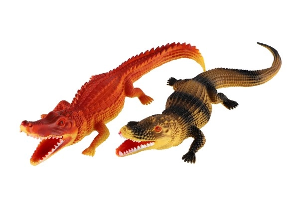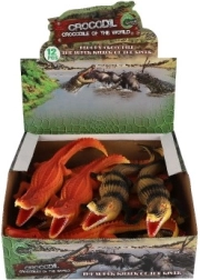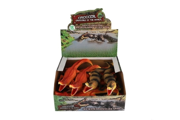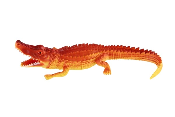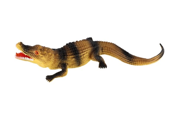 Este cocodrilo de plástico tiene escamas detalladas y la boca abierta, lo que lo convierte en una copia fiel de un cocodrilo real.