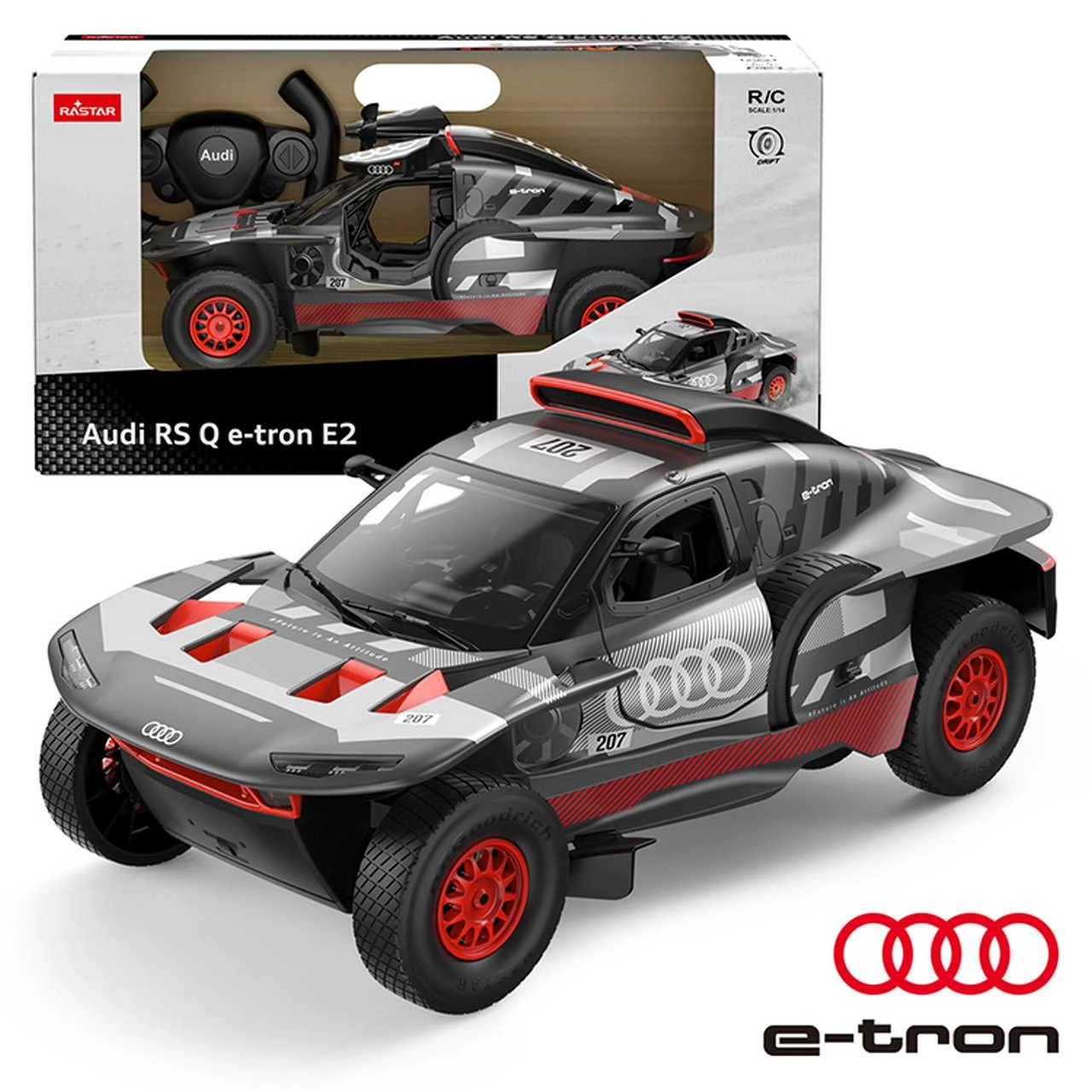 Fiel modelo a control remoto AUDI RS Q e-tron de la marca RASTAR a escala 1:14 que ofrece dirección precisa de 2.4 GHz, ruedas de goma, luces LED delanteras, puertas abatibles y suspensión independiente. Gracias al plástico ABS de alta calidad y al interior detallado, disfrutarás de una conducción realista con 2 velocidades.
