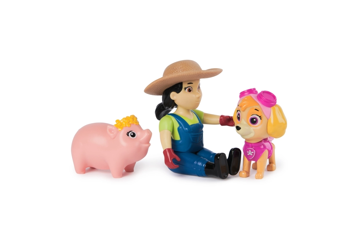 Skye, la granjera Yumi y el cerdito con los colores de la serie y detalles fieles para recrear escenas de forma realista.