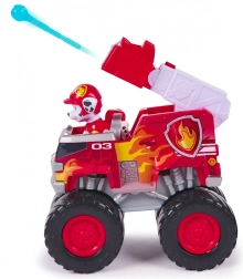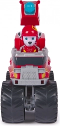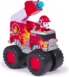 El monster truck con neumáticos grandes supera cualquier obstáculo y luce como si saliera directamente de la serie PAW PATROL.