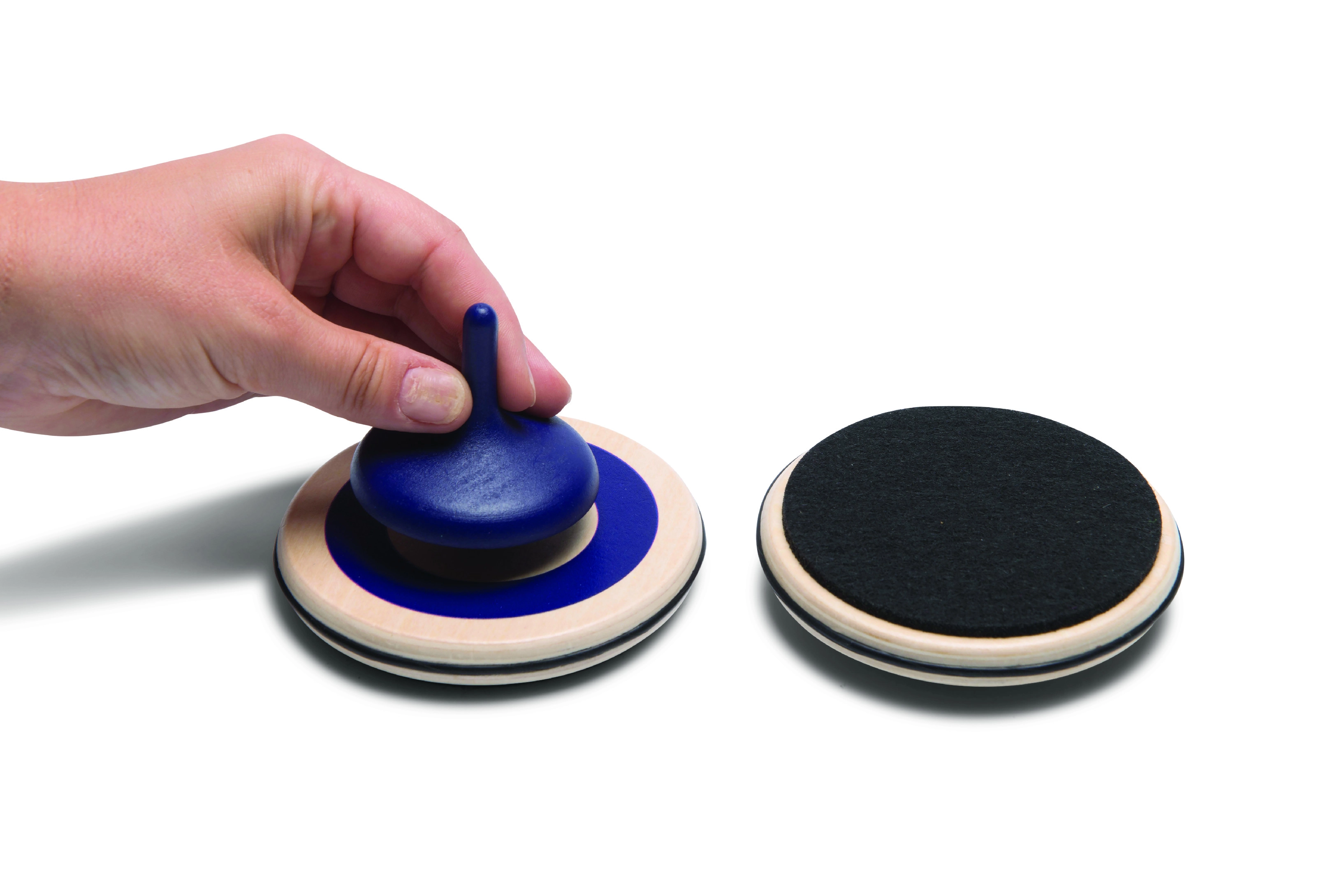 Las piedras de madera con base de fieltro se deslizan con suavidad sobre madera, laminado y vinilo, para que disfrutes del curling casi en cualquier lugar.