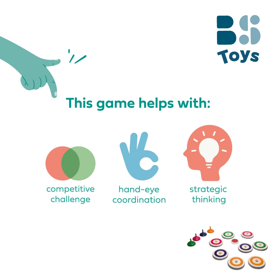 Es un juego ideal para familias y amigos. Favorece la concentración, la motricidad fina y el trabajo en equipo. Gracias a sus dimensiones prácticas, se guarda y transporta fácilmente, por lo que podrás usarlo en casa, en la escuela o en la casa de campo.