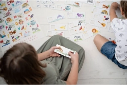 El juego también desarrolla la memoria y la capacidad de concentración. El niño aprende a emparejar imágenes y fichas con letras.