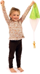 ¡Lanza, mira y atrapa! El paracaidista luminoso con paracaídas ofrece diversión de acción sin fin y enseña a la vez los principios de la caída y el planeo. Solo hay que lanzarlo al aire: el paracaídas se despliega y ralentiza la caída igual que en un paracaidista real. Gracias a la figura compacta de 12 cm, el juguete es adecuado para el jardín, el parque y el interior.