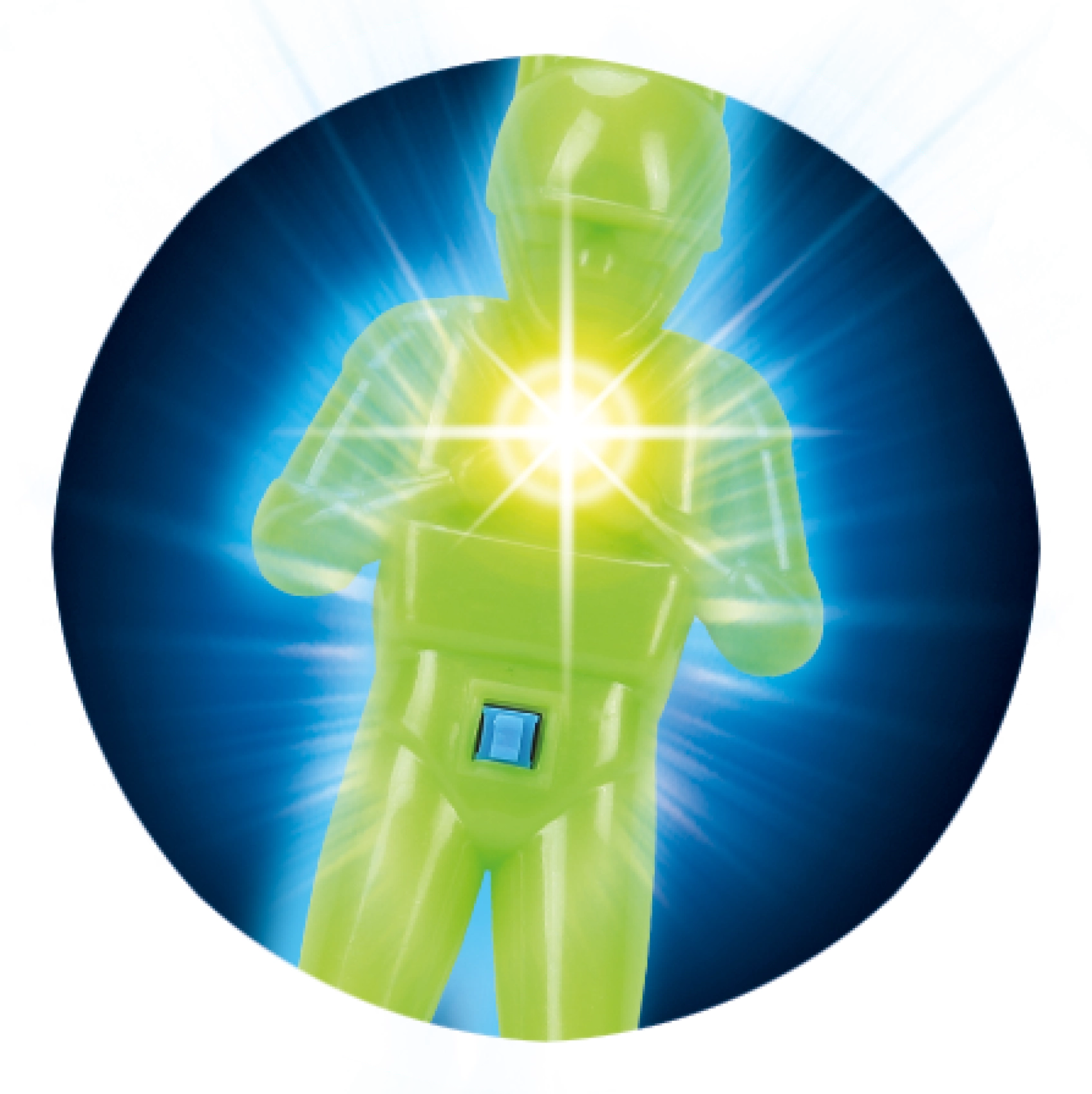La luz integrada aumenta la visibilidad y el atractivo del juego. Las pilas 3× AG3 están incluidas en el paquete, para jugar de inmediato.