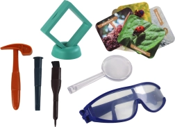 El set incluye gafas protectoras y una lupa, garantizando una exploración divertida y segura para cada niño.