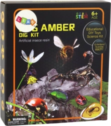 El set arqueológico Excavación de insectos en ámbar es un excepcional kit educativo que brinda a los niños la oportunidad de convertirse en pequeños arqueólogos. El elemento clave del set es un bloque de yeso con insectos ocultos en ámbar artificial. La tarea consiste en revelar estos tesoros con el martillo y el cincel incluidos, lo que ayuda a desarrollar la coordinación motora y la concentración.