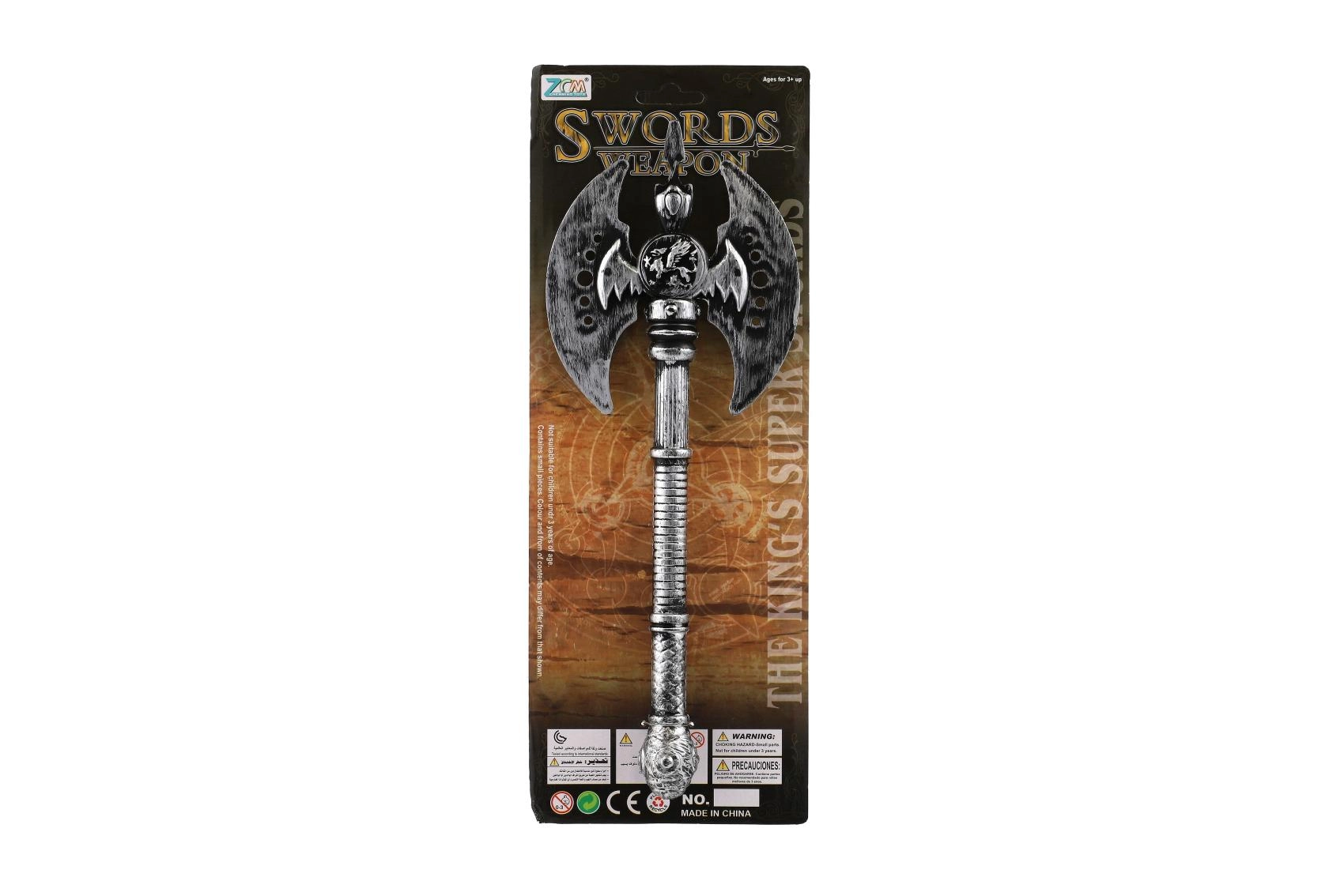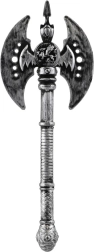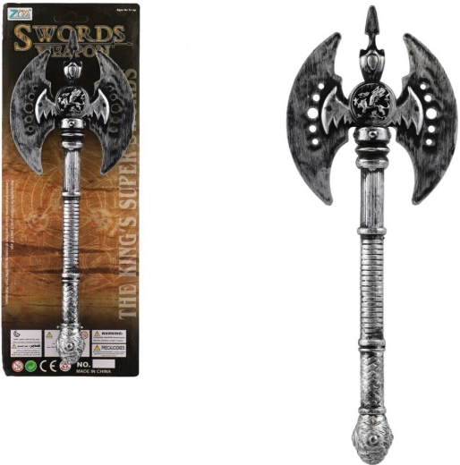 Hacha guerrera de doble filo de plástico, un excelente complemento para disfraces históricos, atuendos de verdugo y para Halloween. Ligera, segura y de 30 cm de largo: ideal para juegos infantiles y fiestas temáticas. Apta para niños a partir de 3 años.
