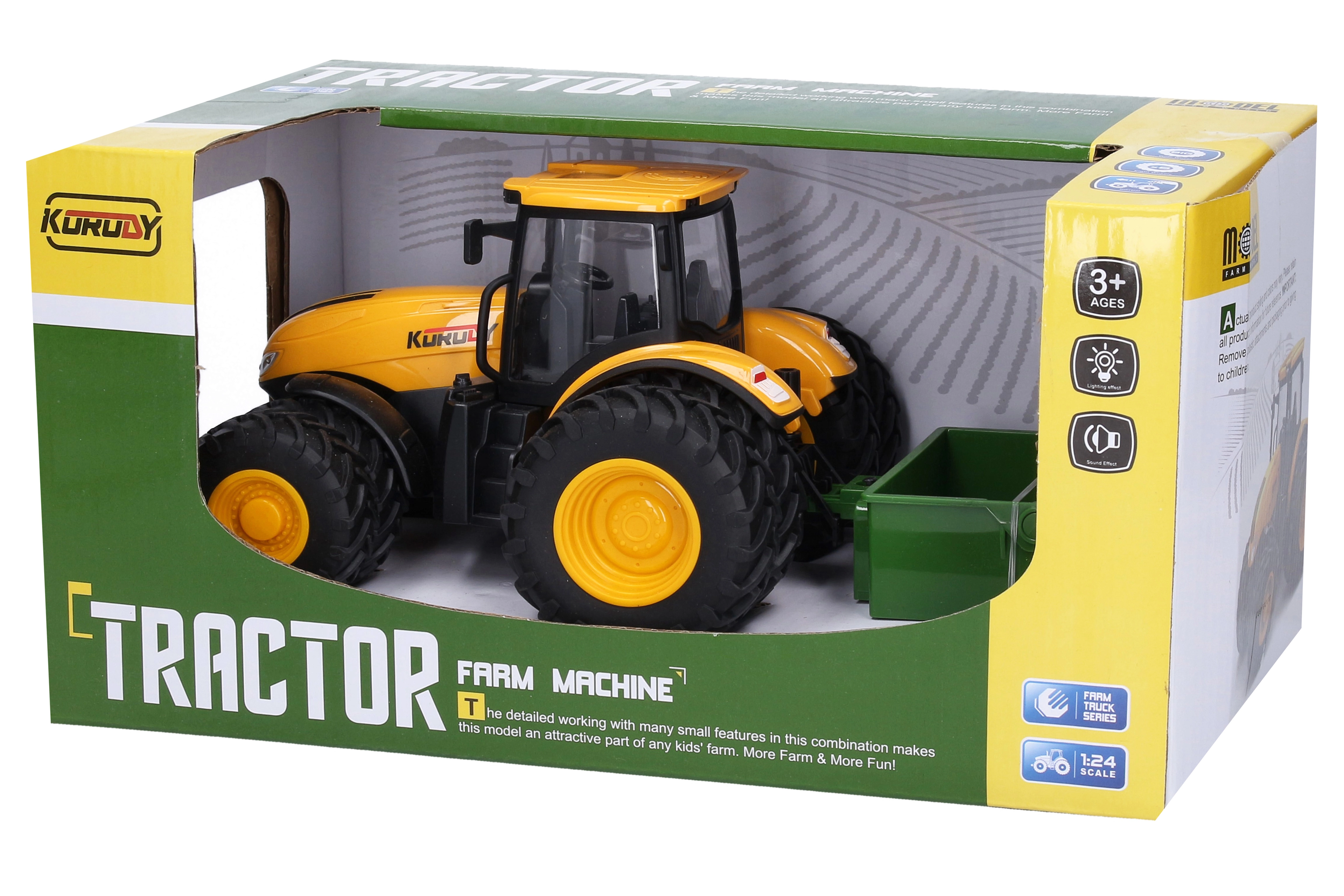 Este tractor viene con accesorios que entusiasmarán a los niños a explorar y jugar. Con unas dimensiones de 27,5 x 10,5 x 12 cm, es una excelente opción para el juego. El tractor está equipado con ruedas dobles para mayor estabilidad y mejor desempeño en terreno. Gracias al mecanismo de inercia, el tractor se mueve fácilmente sin necesidad de pilas. Los efectos de luz y sonido crean una experiencia auténtica y emocionante.