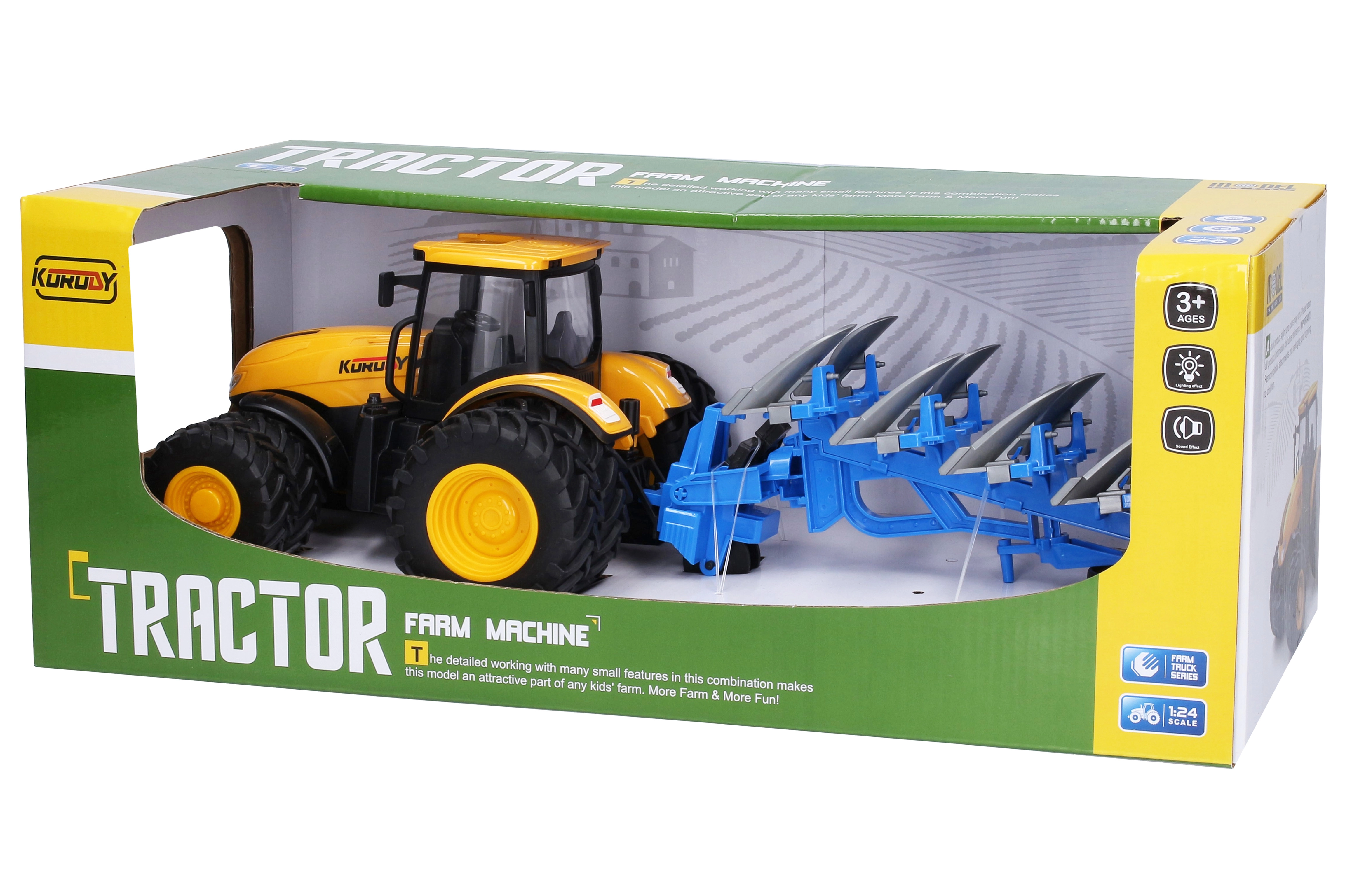 El tractor se distingue por su fabricación precisa y accesorios funcionales, lo que convierte al juguete en una simulación realista de un vehículo real. Diseñado con doble rueda para una mejor estabilidad y movimiento en terrenos irregulares.