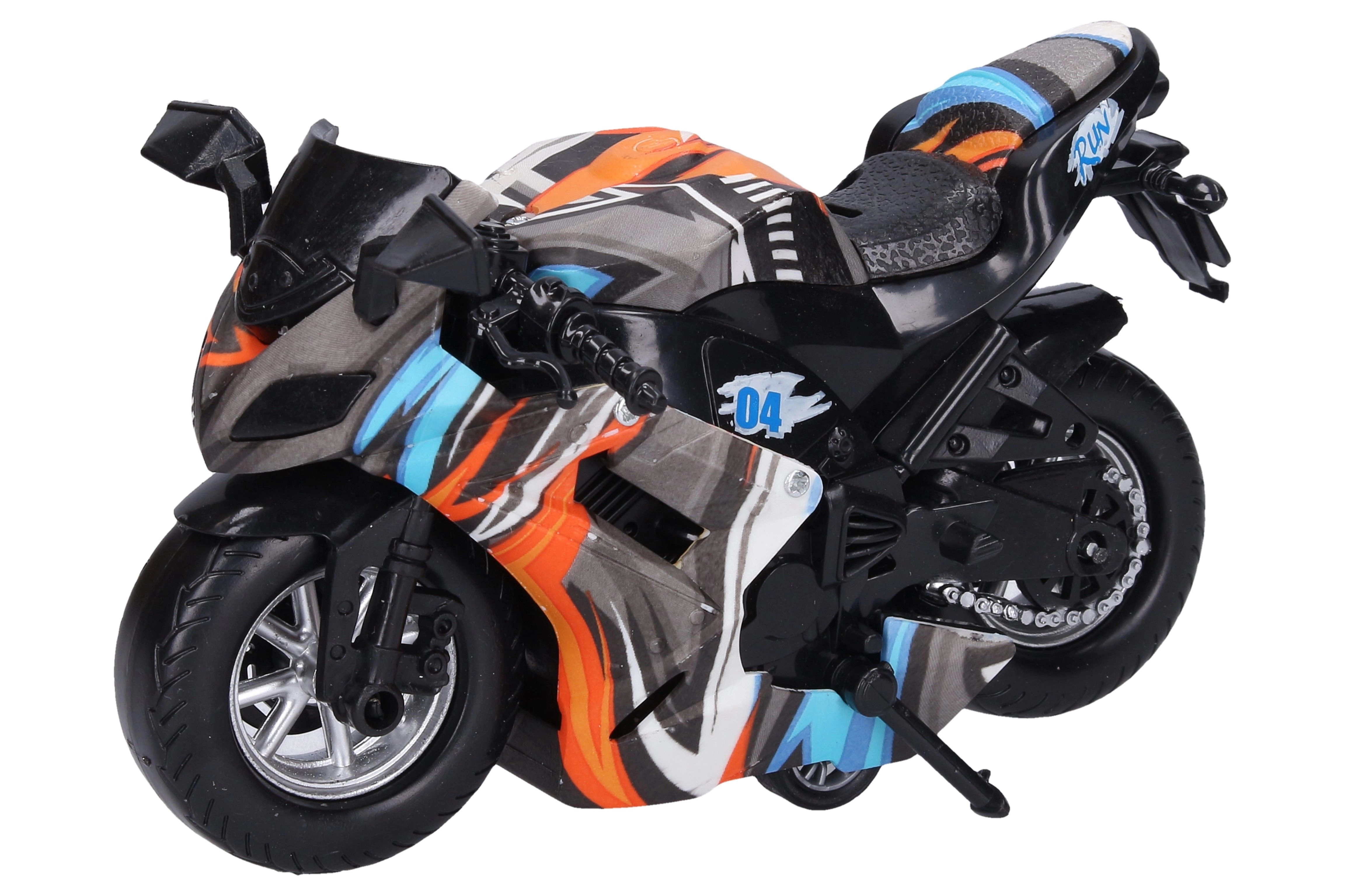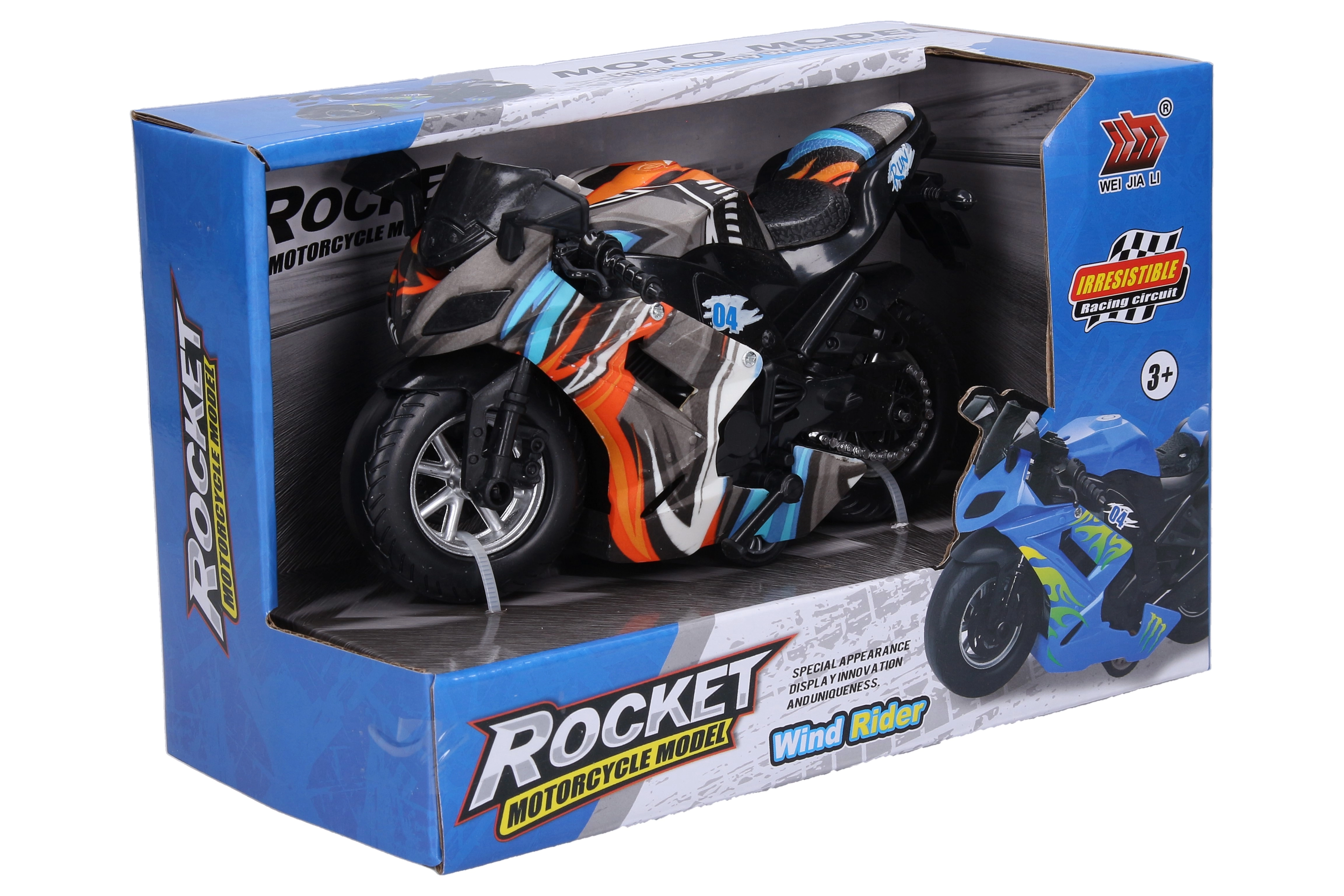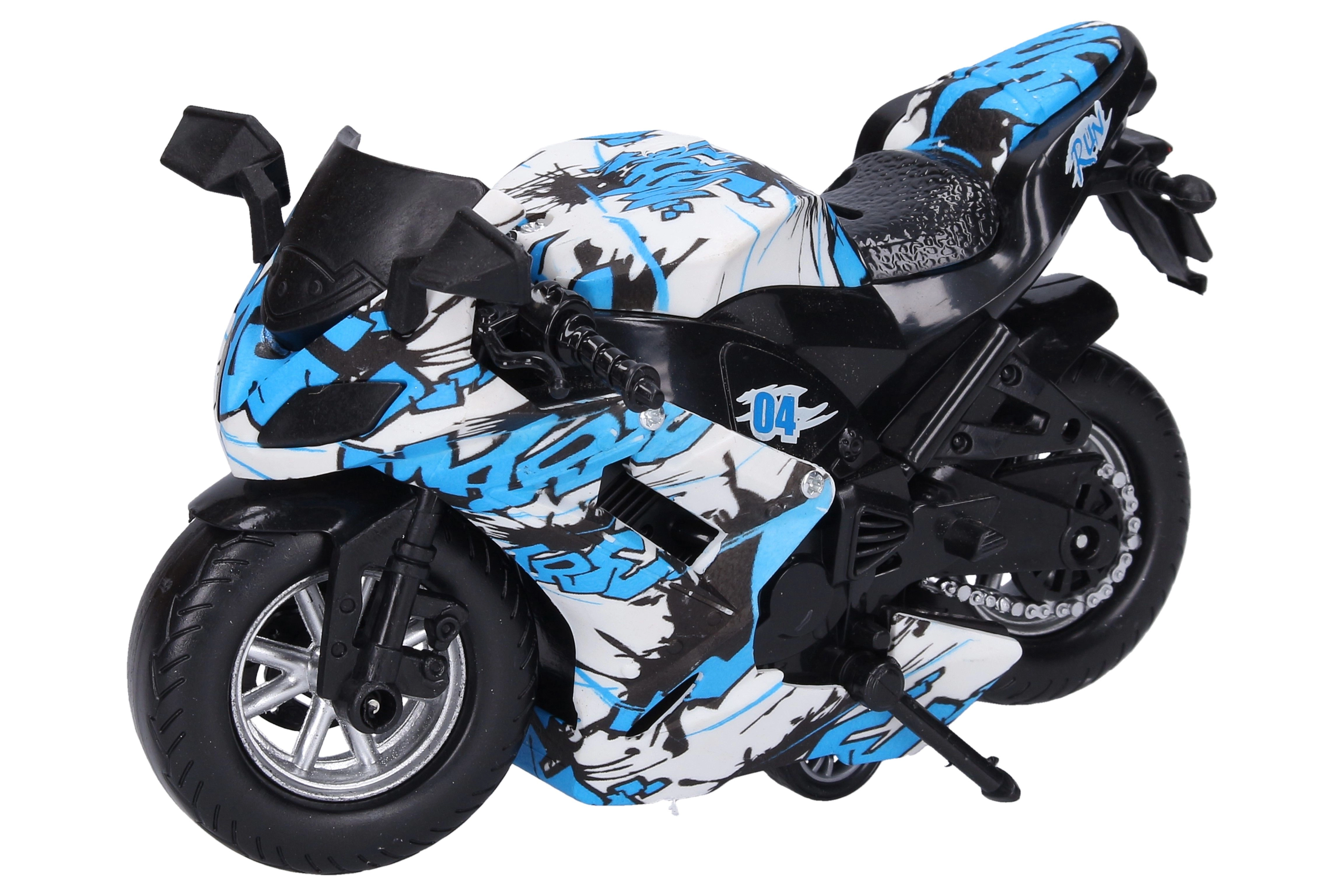 Esta divertida moto de inercia de 16 cm encantará a pequeños y grandes aficionados a la velocidad. Gracias al mecanismo de retroceso, basta con tirar hacia atrás y soltar: saldrá hacia adelante por sí sola. Sus dimensiones compactas y su diseño resistente son ideales para carreras en casa y para llevar de viaje. Disponible en varias combinaciones de colores y con manejo sencillo sin pilas.