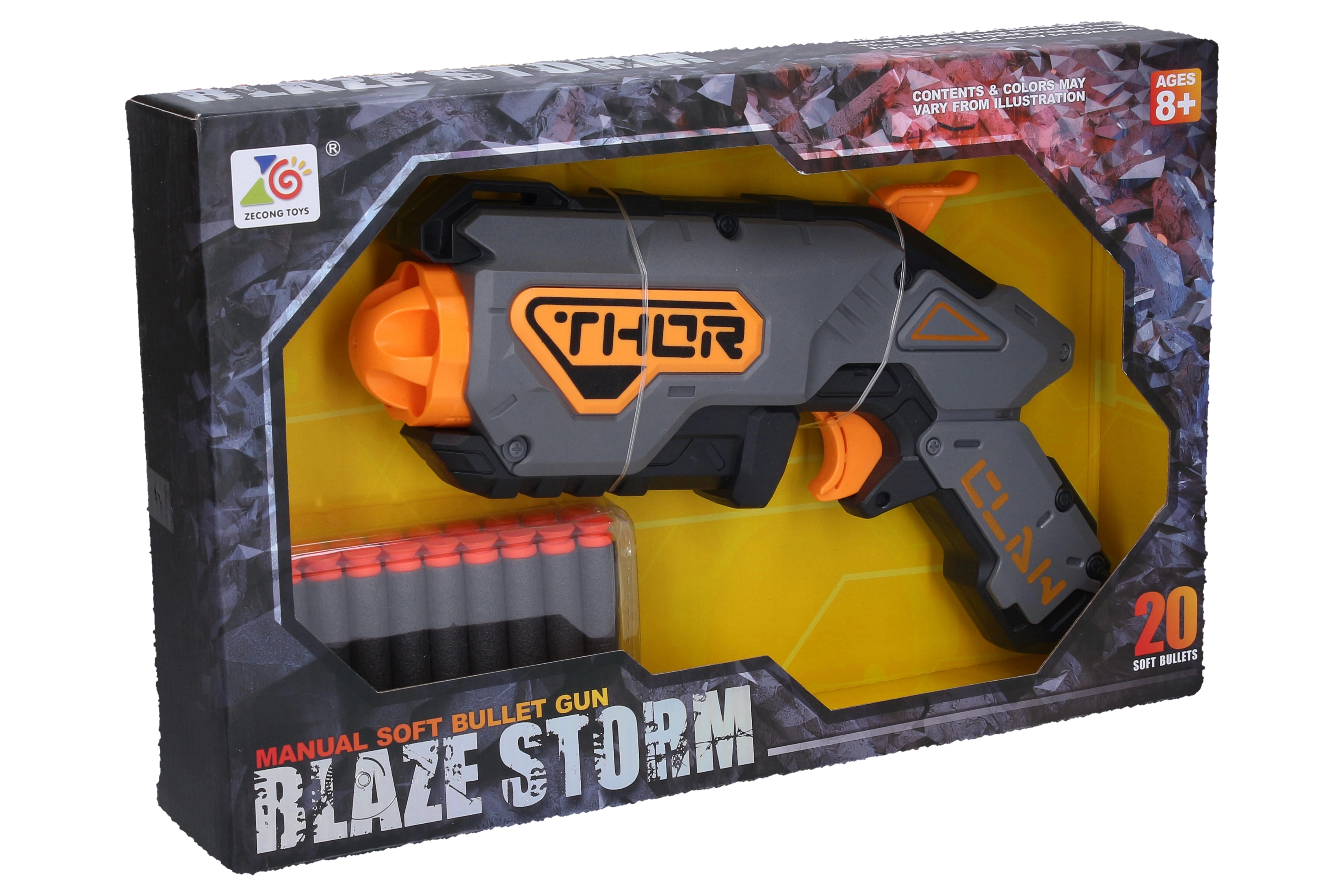 Esta pistola ligera y resistente para proyectiles de espuma aporta mucha diversión sin riesgos. Gracias a sus dimensiones de 27 × 5 × 15 cm, se sujeta cómodamente y es fácil de manejar. En el paquete encontrarás 20 dardos de espuma, para disfrutar de un juego prolongado sin recargas frecuentes.
