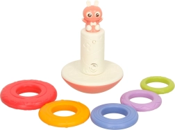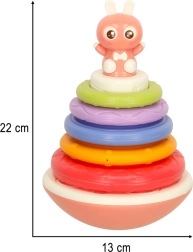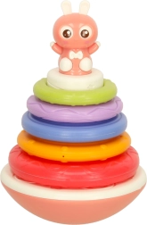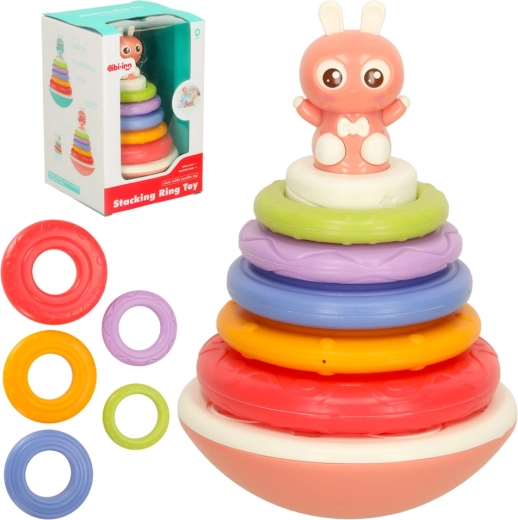 El juguete mecedor Bibi-Inn está diseñado para estimular la vista, el oído y la motricidad de tu bebé. El divertido conejito en la parte superior de la base y la variada paleta de aros garantizan horas de entretenimiento creando una torre arcoíris.