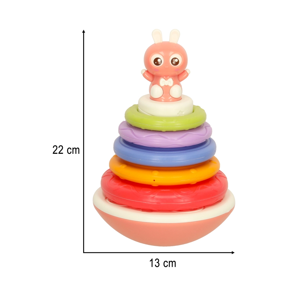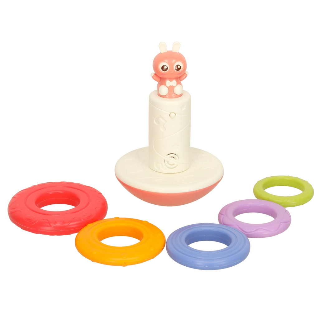 Este juguete está hecho con materiales de alta calidad que aseguran la seguridad de tu pequeño. A través del apilado de los aros, el niño aprende coordinación y motricidad fina, mientras que las alegres melodías lo motivan a seguir jugando.