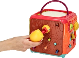 Incluye el popular juego “alimenta al pajarito” con bichitos magnéticos y una lechuza oscilante, así como cubos de colores para el clasificador de formas. Gracias al práctico asa, el cubo es fácil de transportar e ideal para jugar en casa o de viaje.