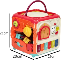 El cubo educativo 6 en 1 es un centro de diversión para los pequeños exploradores. Cada cara esconde una actividad distinta que estimula los sentidos y desarrolla habilidades desde los 18 meses. Desde sonidos de animales realistas en el pianito, pasando por puertecitas y piezas móviles, hasta la clasificación de formas y los engranajes giratorios, el niño ejercita tanto las manos como la mente.