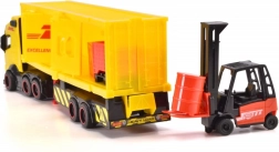 Este modelo de camión VOLVO en colores DHL cuidadosamente detallado ofrece a los niños muchas posibilidades para el juego creativo. Con la carretilla elevadora incluida y las cajas, se puede escenificar fácilmente la carga, el transporte y la descarga, igual que en la logística real.
