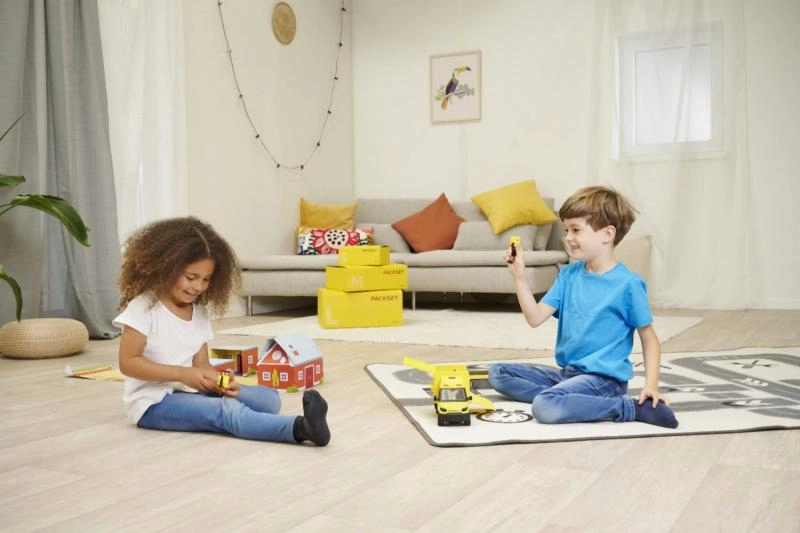 El paczkomat/parcel box, los paquetes, el carro manual y otros complementos amplían las posibilidades de juego y fomentan la creatividad y la motricidad.