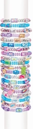 Elige entre hilos de cuentas de colores vivos y envoltorios originales con diseño de dulces para crear pulseras a tu gusto.