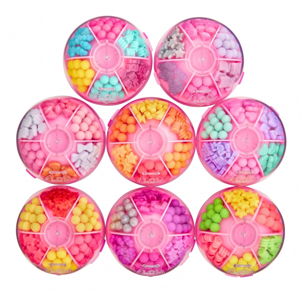 Las cuentas, tras humedecerlas con el pulverizador y endurecerse, se mantienen firmes, pero son fáciles de desmontar para seguir creando. El cabello y las cuentas se pueden intercambiar entre muñecas, lo que hace que el juego sea siempre divertido. Gracias a los diversos accesorios, cada juego es diferente y ofrece nuevas posibilidades.